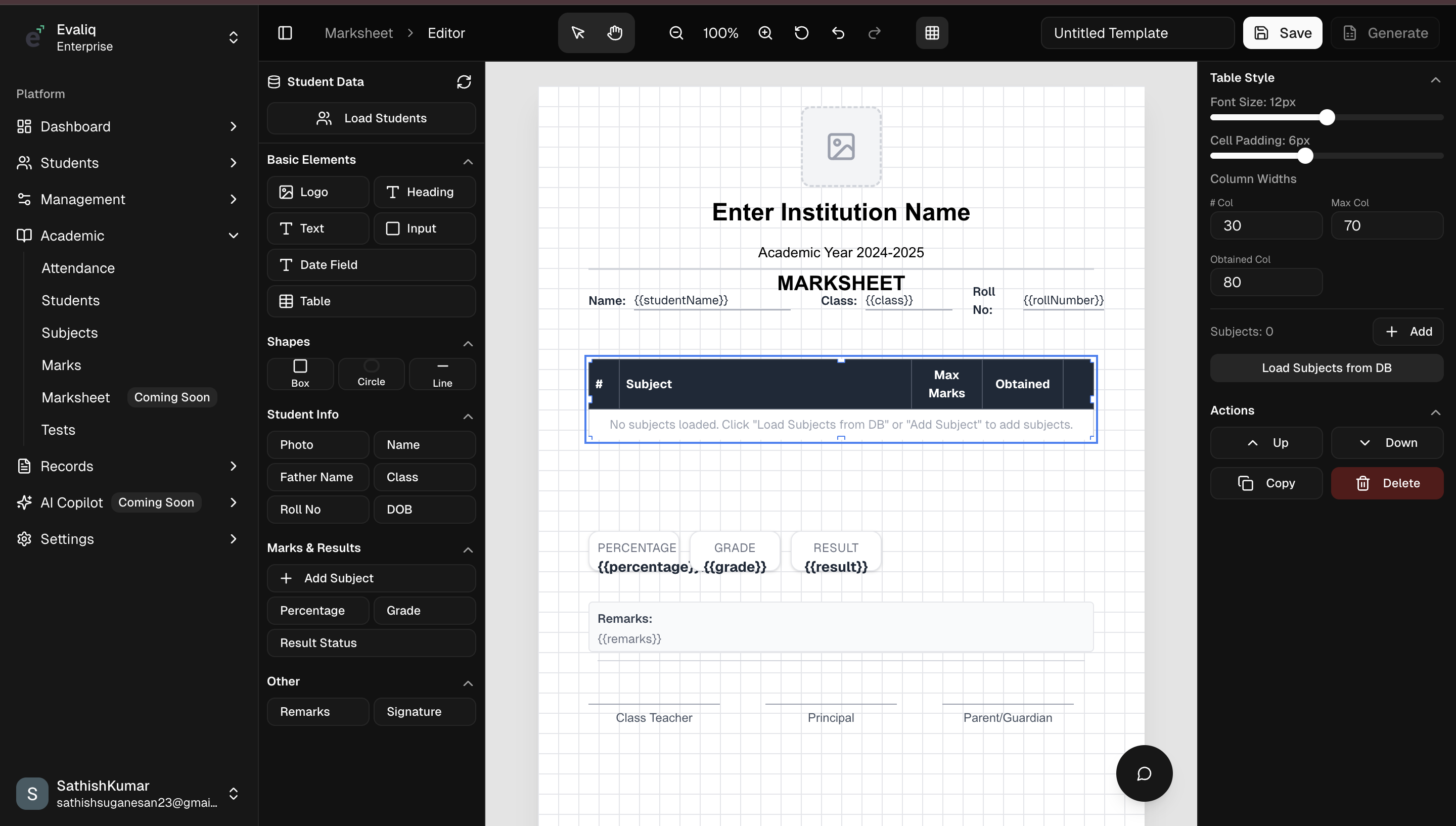 Automated Marksheet Builder